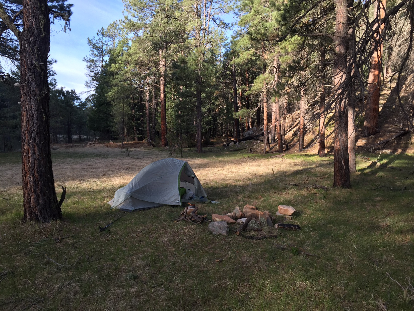 That night and the whole of the next day I gradually gain both elevation and miles. I cross the pretty eastern fork of the Verde River, then walk the red dirt roads and meadows of Hardscrabble Mesa. The trail is nice, the pace is fast, and by early afternoon I’m deep in the pine forest below the cliffs of the Mogollon Rim. I’ve earned a break and a bed.