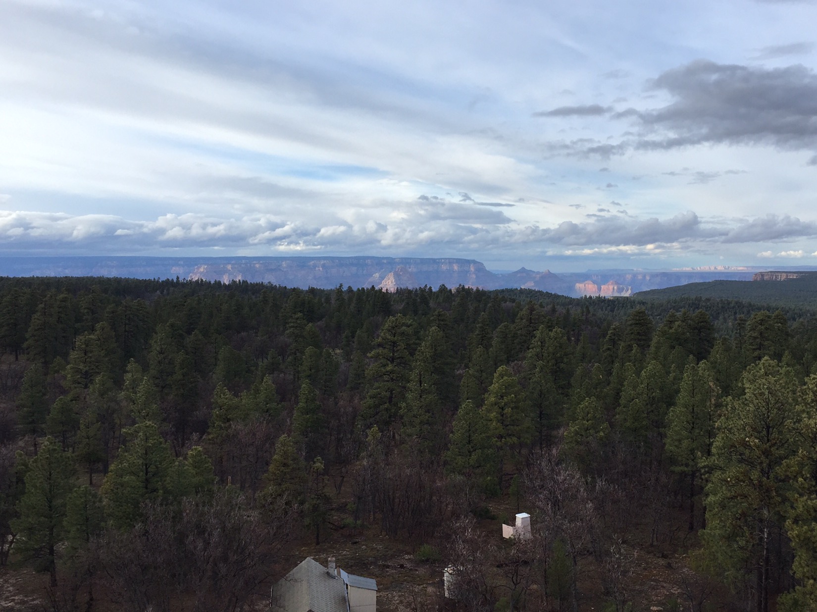 Emma is my traveling companion on this leg of the journey. We made the 14 hour journey from Newark to Flagstaff on the 7th, then spent the next day and a half with Mom and Dad. First night was at the house by the Rio de Flag, then last night at two little cabins at the Grand Canyon Lodge. All of us sat in big Adirondack chairs on the big stone terrace of the Lodge, drinking wine and looking out towards the South Rim.