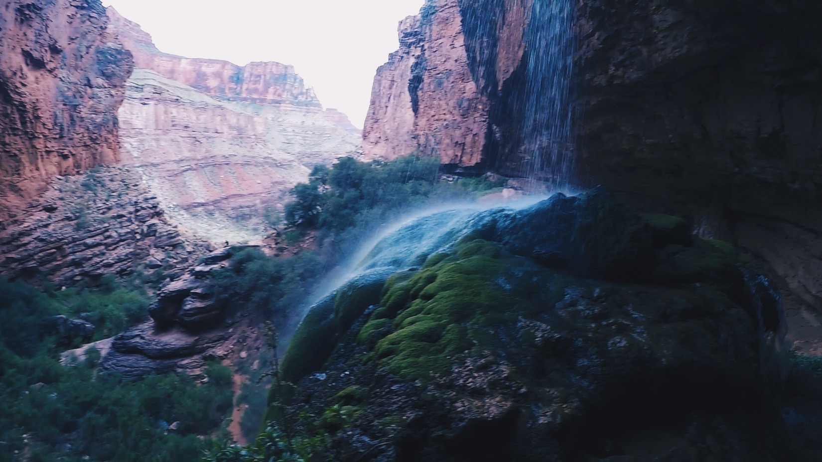 A good rule in the Arizona desert is to avoid doing anything in the sun between 10-2. The heat is especially brutal just after noon. It sucks the air out of everything. By 3pm, however, when the shadows start to lengthen, we go on a 3 mile side trip to Ribbon Falls. It is magic. It’s hard to explain the beauty. Minerals from a lacy waterfall have formed a travertine dome over the years where the water hits the canyon floor. The dome is covered with a delicate green moss and the water glistens like crystal as it trickles down into the pool below.